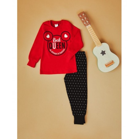 Παιδική πιτζάμα, σε κόκκινο χρώμα, για να απολαμβάνει έναν ξένοιαστο ύπνο αφού είναι γνωστό ότι τα παιδιά παλεύουν με τα σκεπάσματα κάθε βράδυ και καταλήγουν να κοιμούνται ξεσκέπαστα κατά τη διάρκεια της νύχτας, όσες φορές κι αν τα σκεπάσετε. Ύφασμα ευχάριστο στην επαφή με το δέρμα, που το αφήνει να αναπνέει, χωρίς να συγκρατεί την υγρασία. Είναι κατάλληλο για αποφυγή αλλεργίων, με μεγάλη αντοχή στον χρόνο. Μπορεί να φορεθεί κι εκτός ύπνου, μέσα στο σπίτι, χωρίς να χρειάζεται να ψάχνετε καθημερινά για ρούχα.