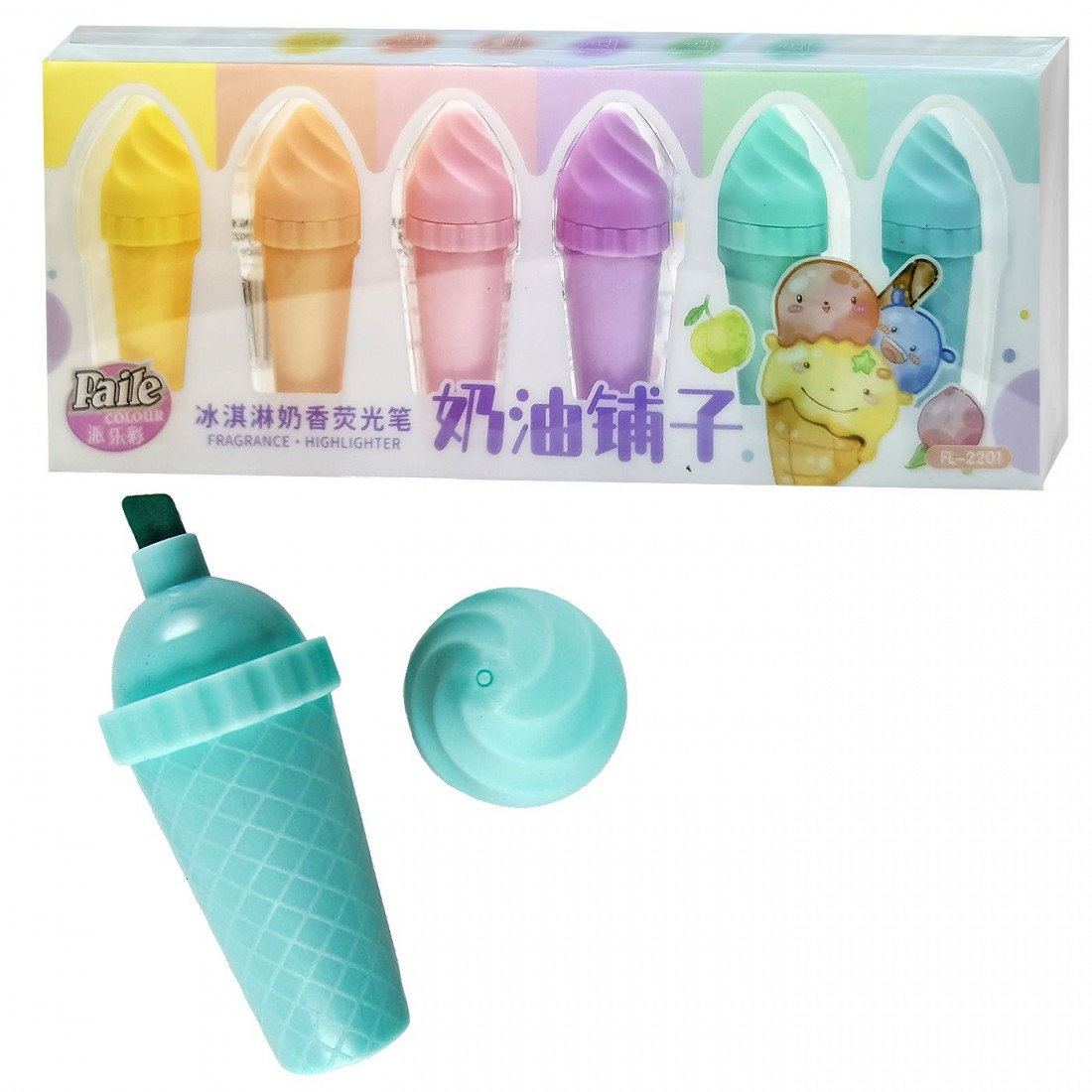 Σετ 6 Μαρκαδόροι Υπογραμμίσεως Παγωτό Χωνάκι 19x8x2cm