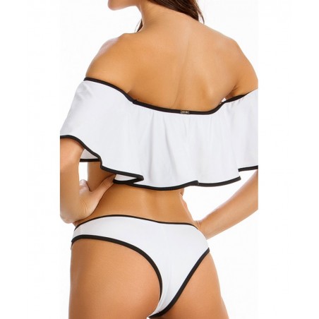 Γυναικείο μαγιό τοπ σε λευκό χρώμα με μαύρο περίγραμμα.