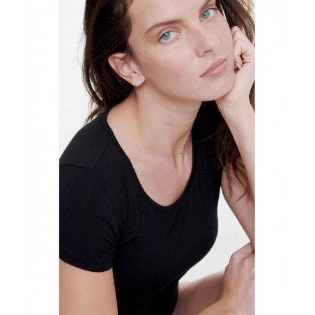W2203-02 WALK ΓΥΝΑΙΚΕΙΟ T-SHIRT ΚΟΝΤΟ ΜΑΝΙΚΙ ΛΑΙΜΟΚΟΨΗ BAMBOO (BLACK)