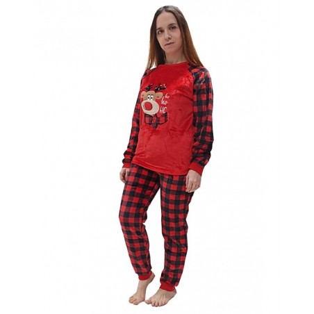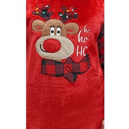 Fleece χειμερινή πυζάμα κόκκινη με ραμμένο σχέδιο τάρανδου