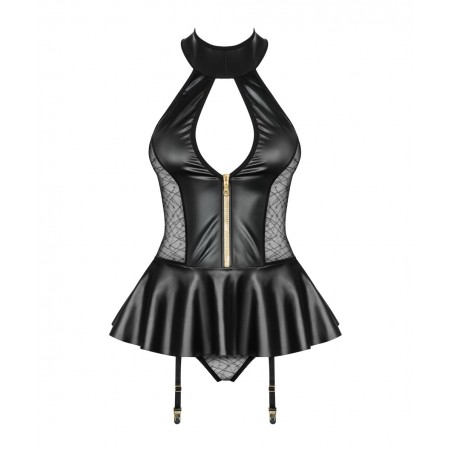 Σέξυ κορσές σε μαύρο χρώμα από τη σειρά Spicy της εταιρείας Obsessive, με "Wet Look" ύφασμα, πλέγμα από υλικό "mesh" στα πλαϊνά και πικάντικο φερμουάρ για ερωτικές νύχτες με το σύντροφό σας.