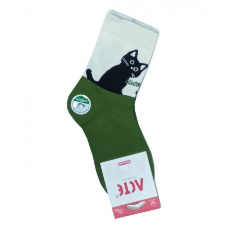 JOIN Σετ 3 Γυναικείες Κάλτσες Γατούλες Βαμβάκι Νormal fit Εκρού - Πράσινο - Μαύρο