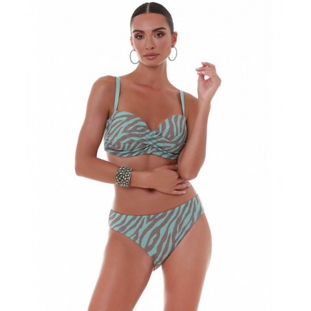 Λαμπερό Lurex που μαγνητίζει το βλέμμα. Σλιπ ψηλό, φαρδύ στο πλάι και πίσω. Αόρατες ραφές και λάστιχα, εφαρμόζει χωρίς να πιέζει κολακεύοντας την σιλουέτα.