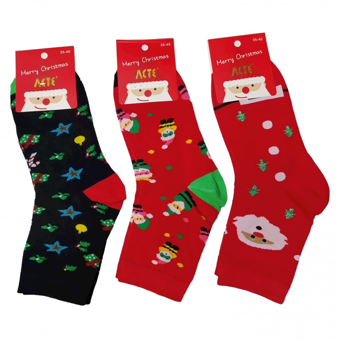 ΛCTE ΣΕΤ ΓΥΝΑΙΚΕΙΕΣ ΧΡΙΣΤΟΥΓΕΝΙΑΤΙΚΕΣ ΚΑΛΤΣΕΣ ΜΕ ΣΧΕΔΙΑ 3 ΖΕΥΓΗ (BLACK-RED)