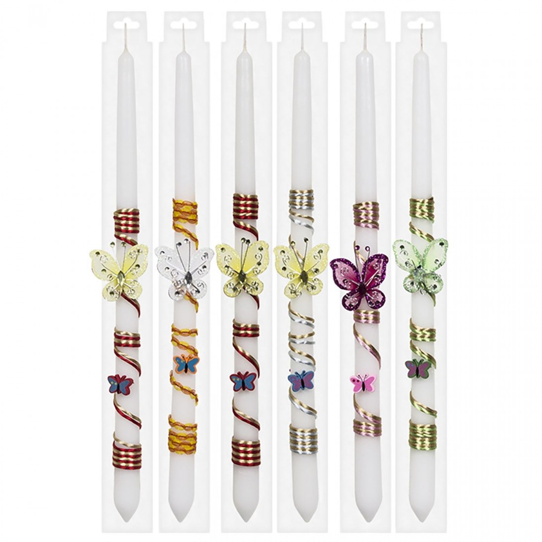 Λαμπάδα Λευκή Κορδόνι-Πεταλούδα 40cm