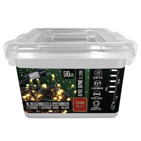 93-3473 510 510 ΛΑΜΠΑΚΙΑ LED ΛΕΥΚΟ ΘΕΡΜΟ ΣΕ ΣΕΙΡΑ ΜΕ ΠΡΟΓΡΑΜΜΑΤΑ IP44 28,5M