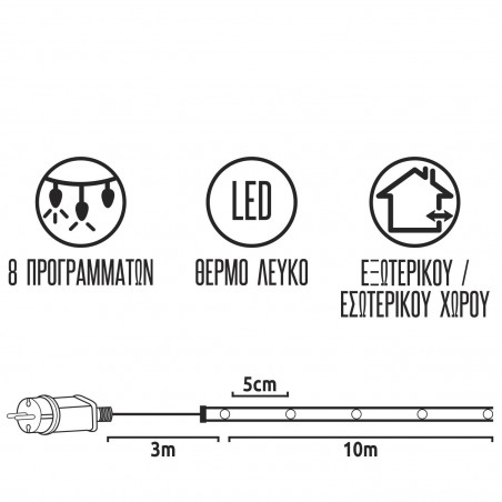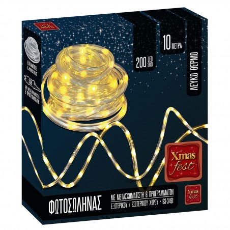 93-3491 ΦΩΤΟΣΩΛΗΝΑΣ 200 LED 10M ΛΕΥΚOΣ ΘΕΡΜOΣ ΜΕ ΠΡΟΓΡΑΜΜΑΤΑ IP44 10M (+3M EXTRA ΚΑΛΩΔΙΟ)