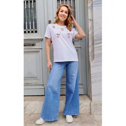 PACO & CO ΓΥΝΑΙΚΕΙΟ T-SHIRT STRASH ΒΑΜΒΑΚΙ NORMAL FIT ΣΚΟΥΡΟ ΜΠΛΕ