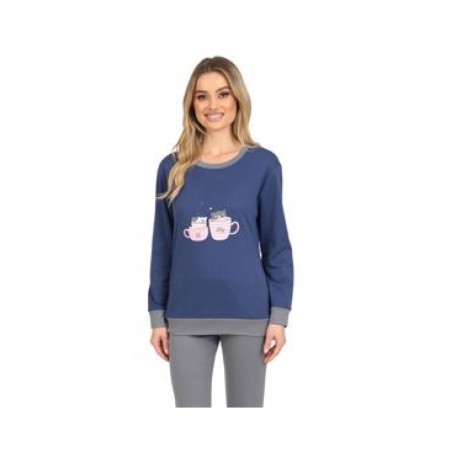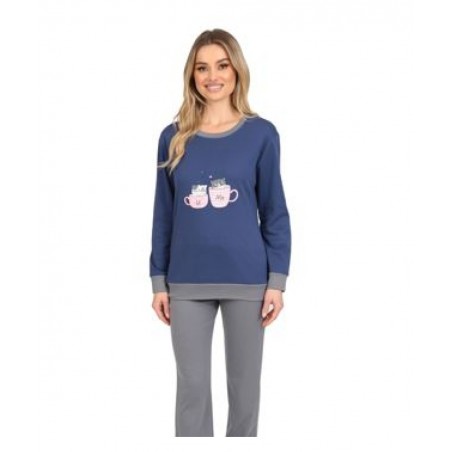 LYDIA CREATION Γυναικεία Πυζάμα Βαμβακερή Normal Fit 25619-2 Μπλε