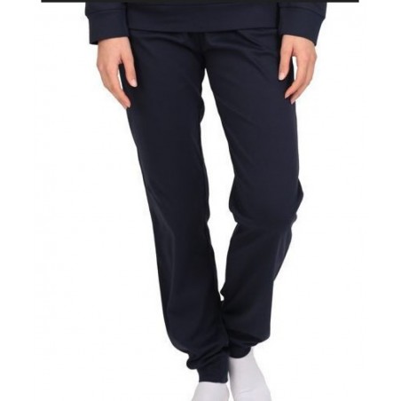 Με στρογγυλή λαιμόοψη και λάστιχο στο τελείωμα του μανικιού και στο τελείωμα του οαντελονιού.