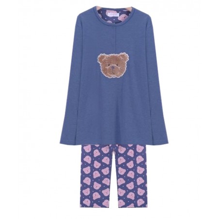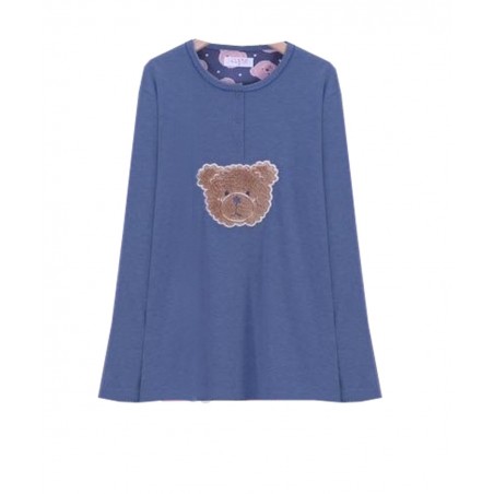 COOL Γυναικεία Χειμερινή Πυτζάμα με Μακρύ Μανίκι με Σχέδιο Αρκουδάκι Μπλε Βιολε