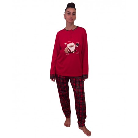 Χαρίστε στον ευατό  σας άνεση και γιορτινή διάθεση με αυτή την υπέροχη  πιτζάμα. Το σετ αποτελείται από κόκκινη μπλούζα με χαρούμενη στάμπα του Άγιου Βασίλη και καρό παντελόνι σε κόκκινο-μαύρο σχέδιο.