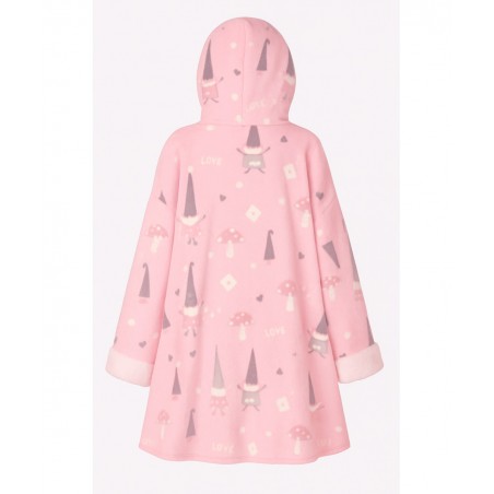 Η κουκούλα με γούνινη επένδυση και οι μανσέτες με faux fur προσθέτουν έναν παιχνιδιάρικο και ταυτόχρονα κομψό χαρακτήρα, ενώ το ροζ χρώμα με χριστουγεννιάτικα μοτίβα (μικρούς νάνους, γράμματα και καρδούλες) αποπνέει χαρούμενη, γιορτινή διάθεση.