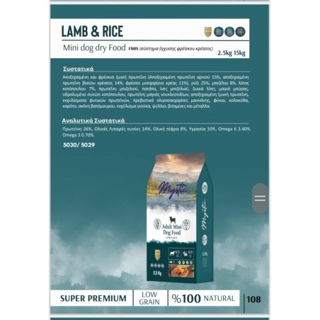 Ξηρά Τροφή Σκύλου Mystic για Ενήλικες Σκύλους με Αρνί & Ρύζι 2.5kg