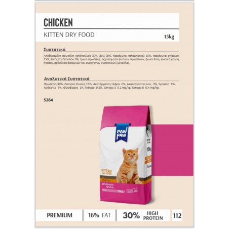 Pawpaw Kitten Chicken Ξηρά Τροφή για Ανήλικες Γάτες με Κοτόπουλο 15kg