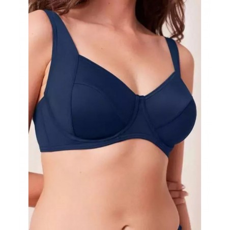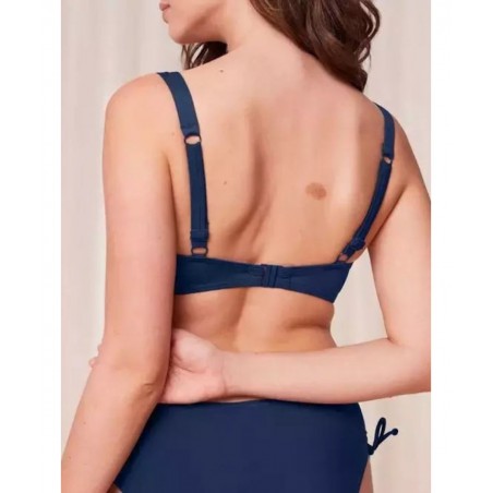 Bikini Top της εταιρείας TRIUMPH σε γαλάζιο χρώμα, με ρυθμιζόμενες τιράντες, μπανέλα για σταθερό κράτημα και κούμπωμα στην πλάτη